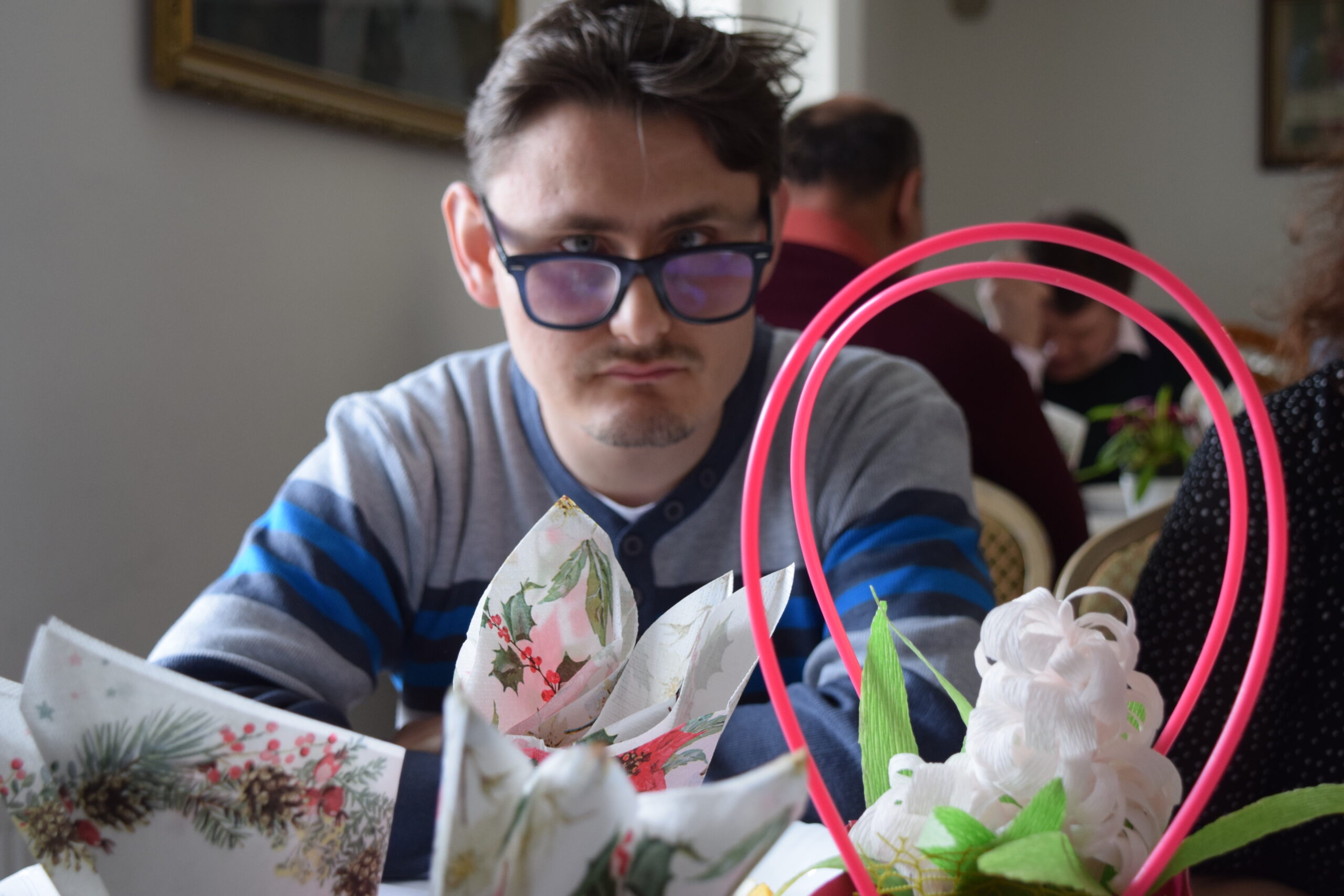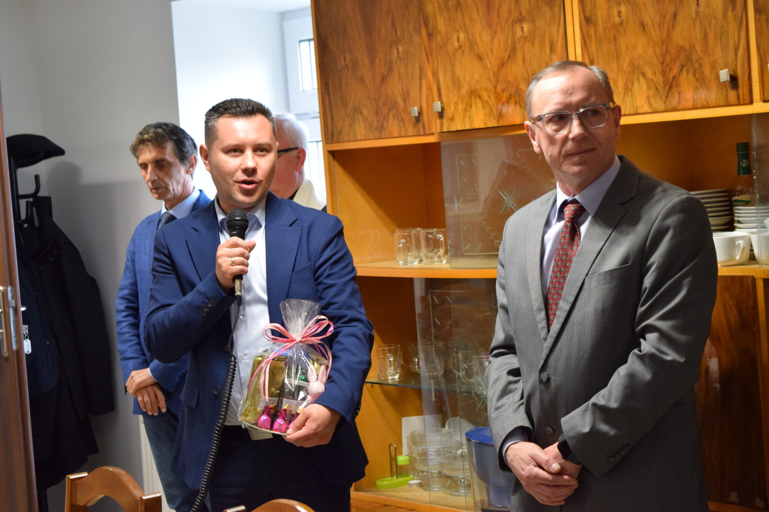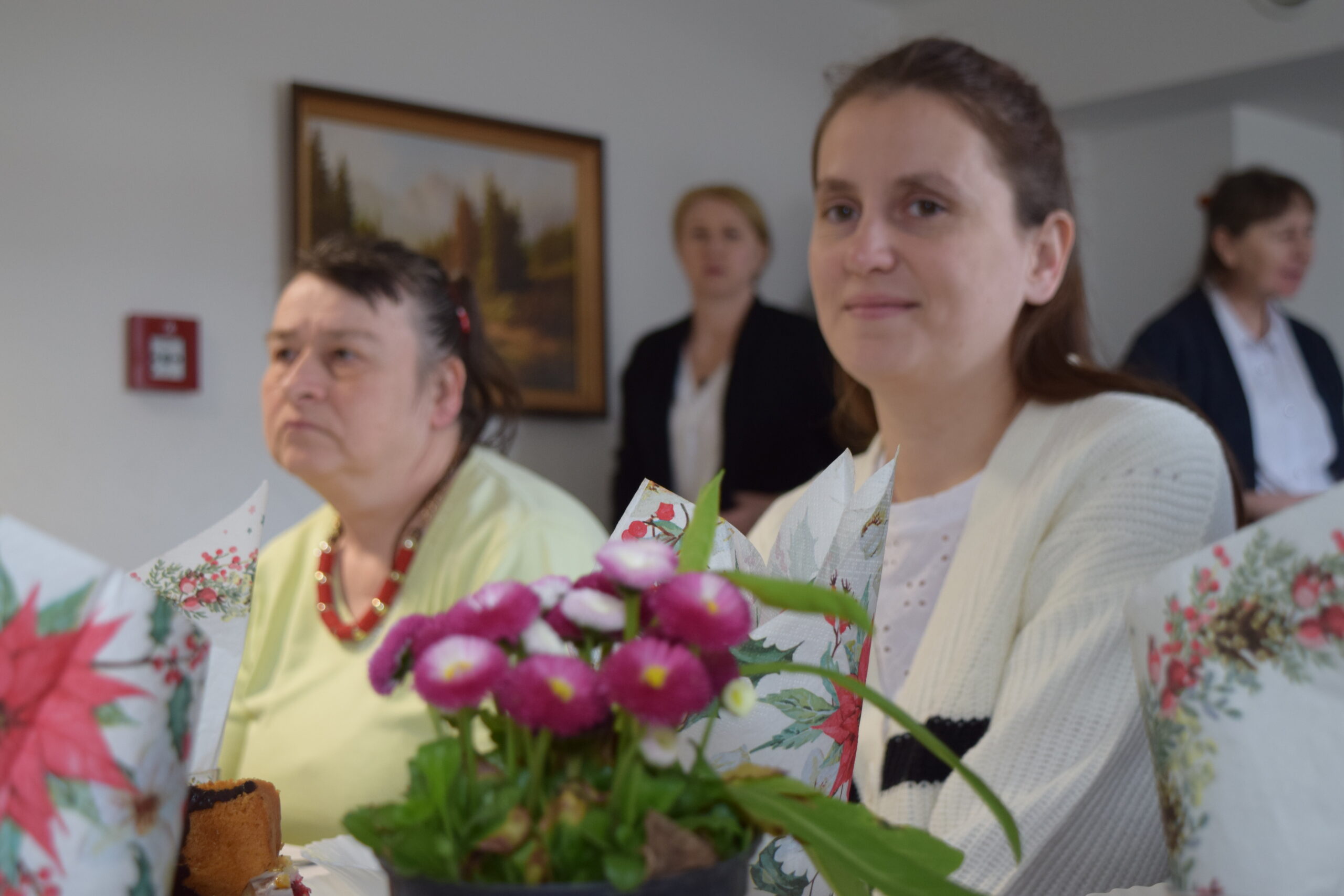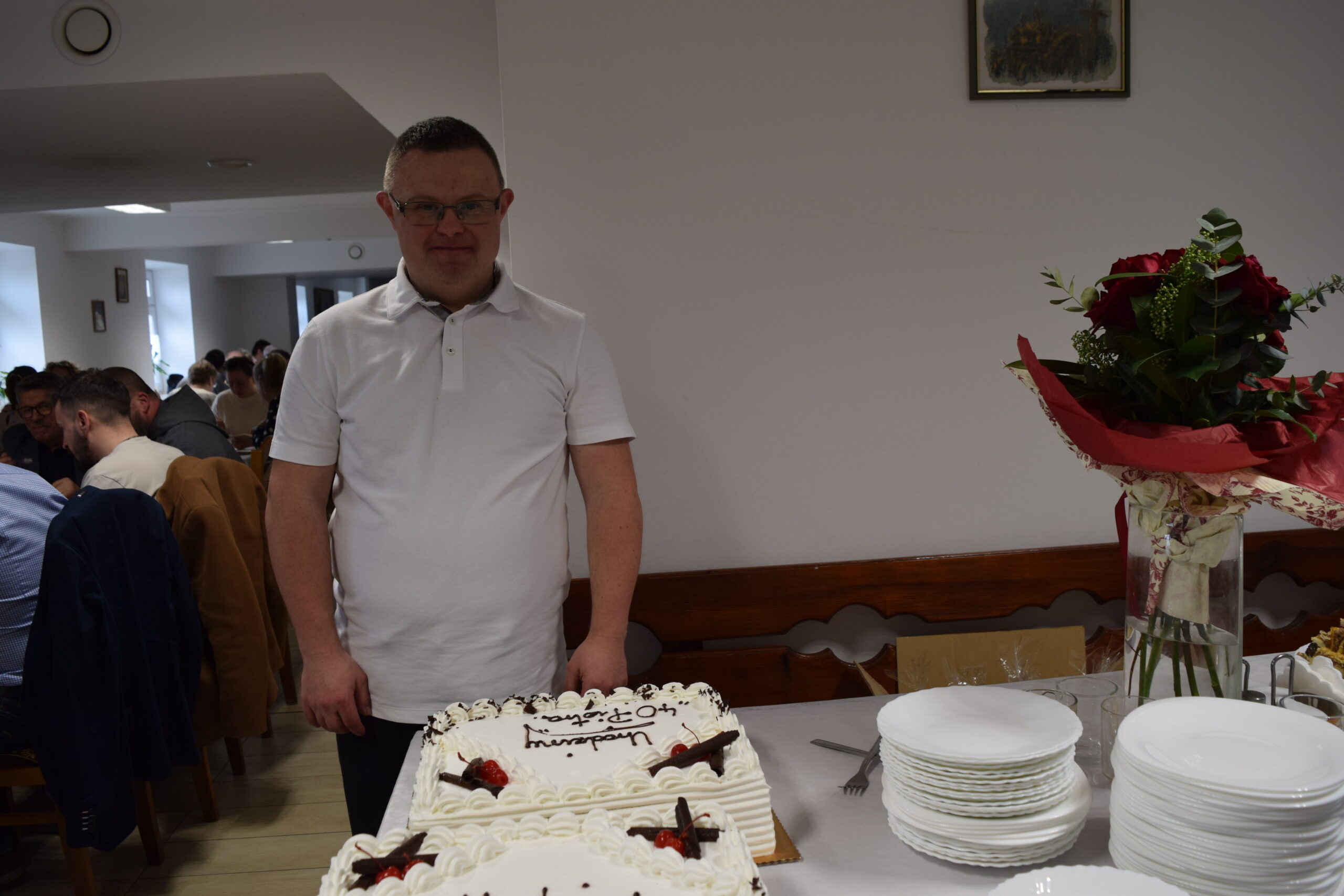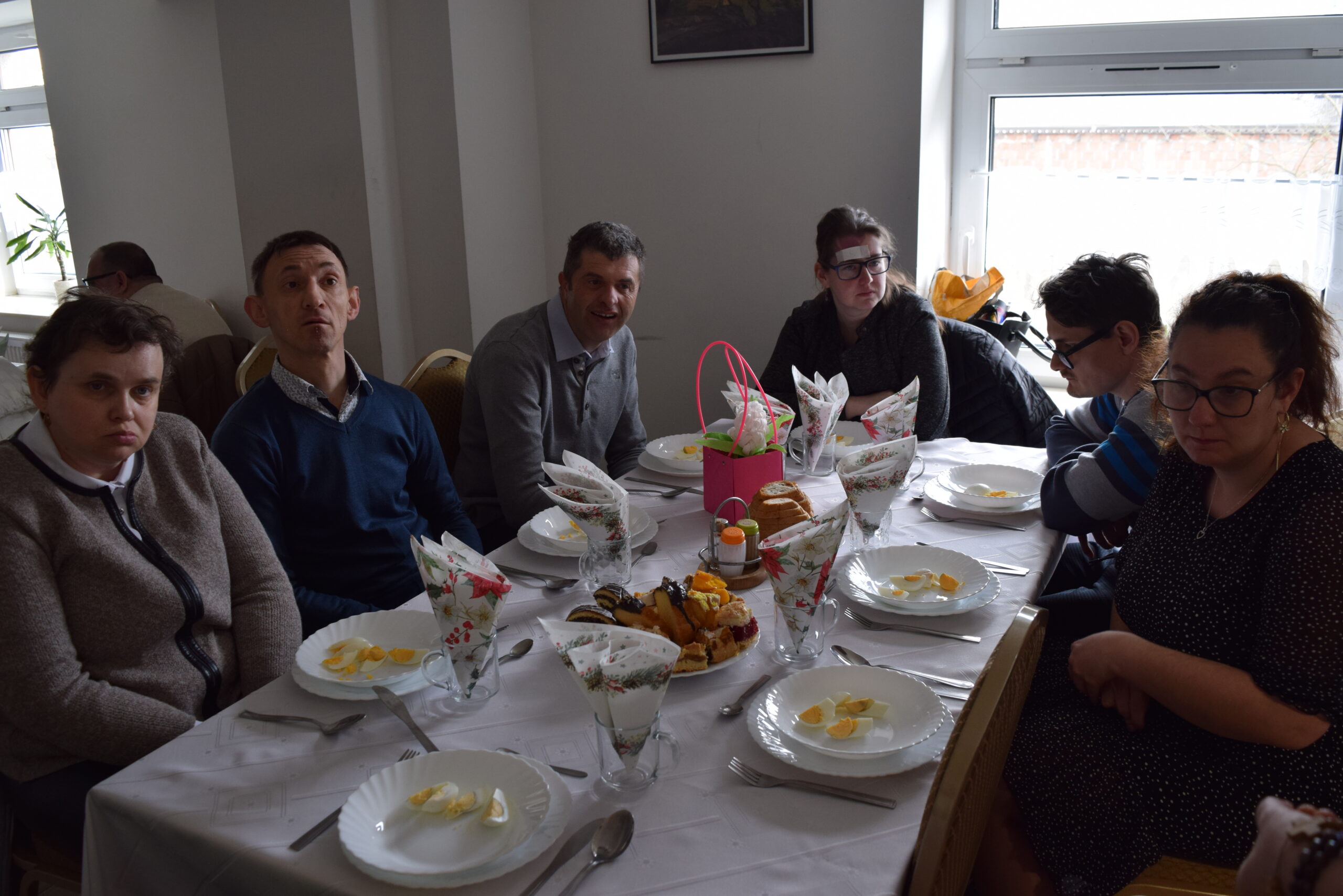 Wspólną radość ze zbliżających się Świąt Wielkiej Nocy dzielili uczestnicy, pracownicy oraz zaproszeni goście: Pan Jarosław Samela – członek zarządu Powiatu Starachowickiego, Pani Anna Wojciechowska – zastępca Dyrektora PCPR w Starachowicach, Pan Paweł Żłobecki- Przewodniczący Powiatowego Zespołu d.s. Orzekania o Niepełnosprawności, Pan Piotr Gos – specjalista rehabilitacji społecznej PCPR w Starachowicach oraz Pan Wiesław Daszkowski – były Dyrektor PCPR w Starachowicach. Dodatkową okazją do świętowania były 40ste urodziny naszego uczestnika Piotra.